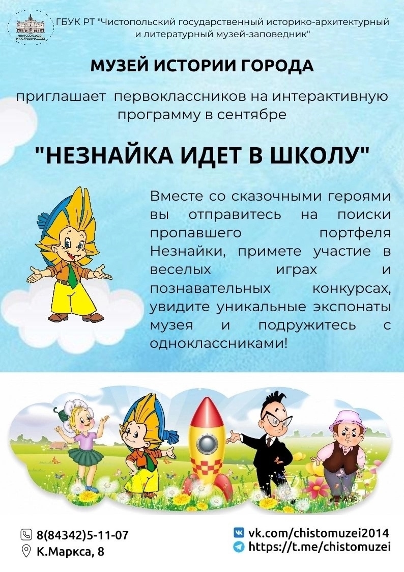 В новом учебном году музей-заповедник приглашает первоклассников стать участниками интерактивной программы «Незнайка идет в школу».