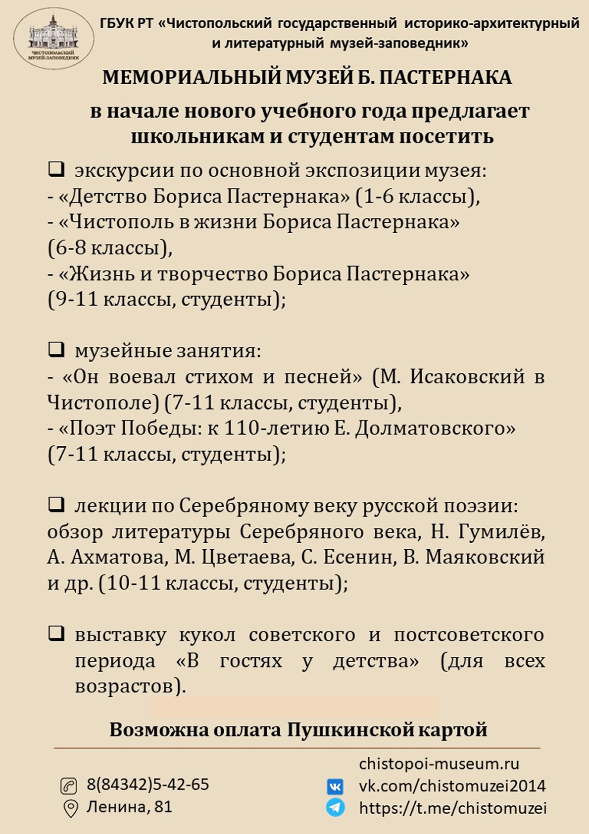 Музейные программы и уроки - 2025