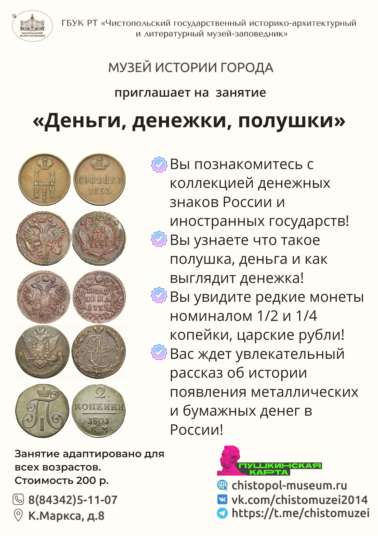 Новое захватывающее музейное занятие проходит в музее истории города на выставке, посвященной истории денежных знаков России и иностранных государств.