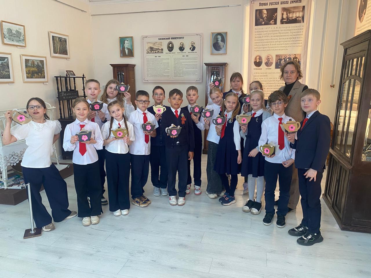 В Музейно-выставочном комплексе ароматным чаем завершился цикл музейных занятий «Природа в жизни А. М. Бутлерова» для учащихся 3А класса МБОУ «Гимназия 1». И чаем не случайно, ведь Бутлеров изучал вопрос о возможности разведения чайного куста в России и положил начало устройству на Кавказе чайных плантаций. На завершающем занятии дети узнали о символе чайного стола — самоваре, об истории появления чая, секретах его заваривания. Весь цикл был посвящен увлечениям ученого и неизменно заканчивался полюбившимися детям мастер-классами.